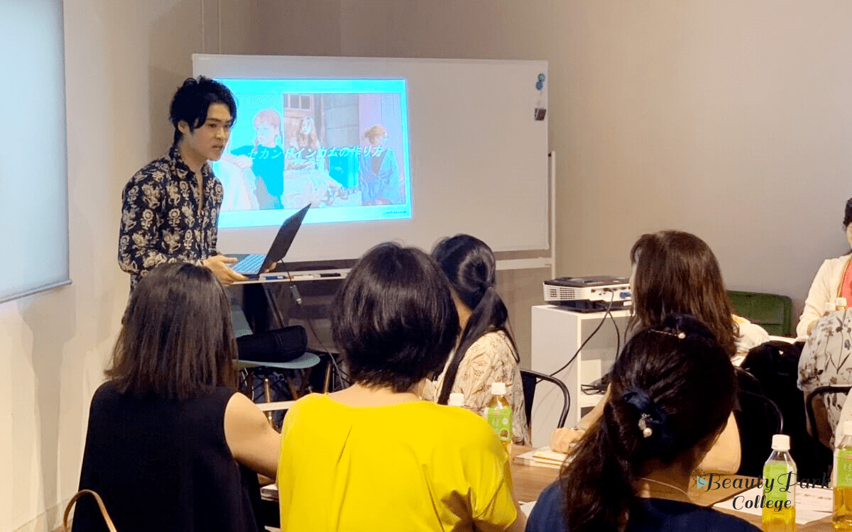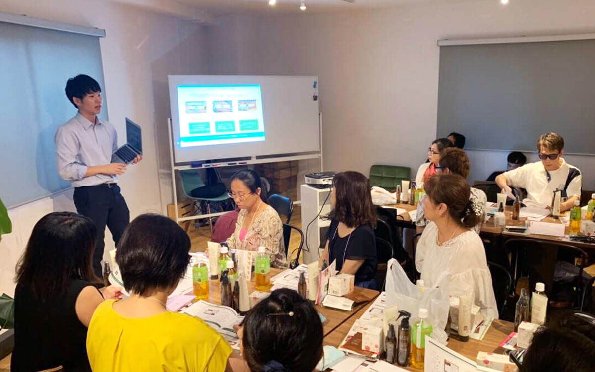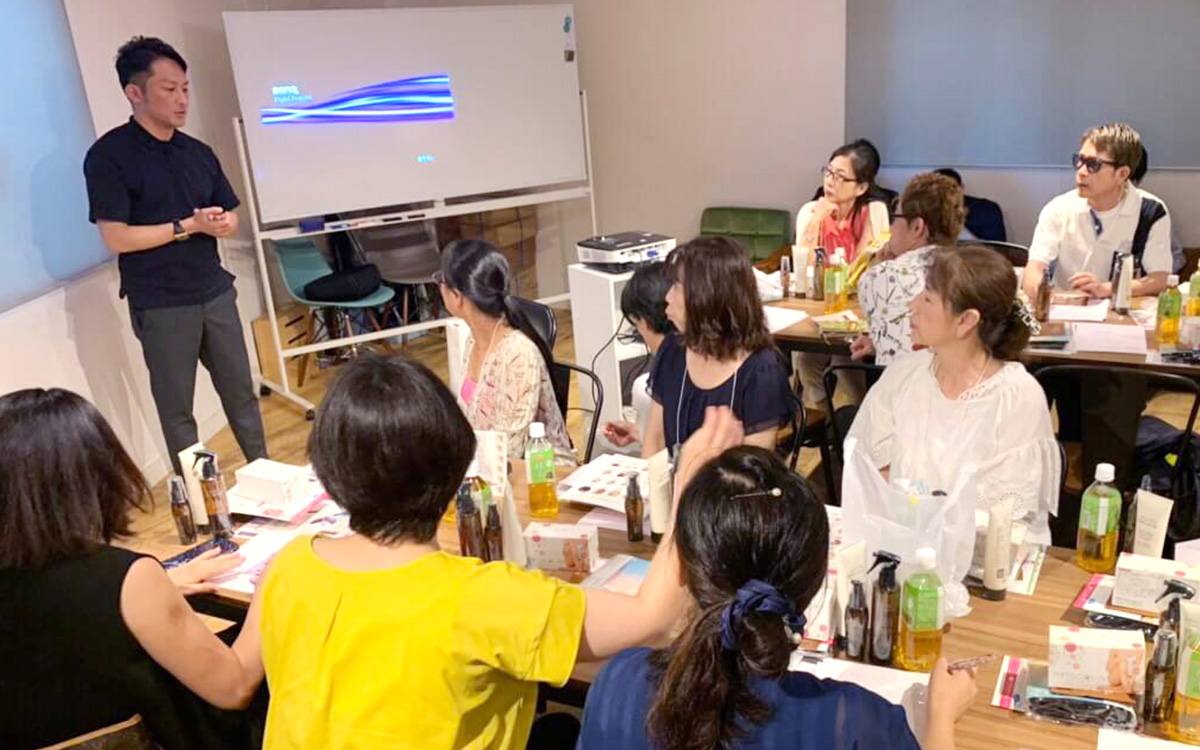 ユナイト株式会社より金木春花氏にご登壇いただき、高いリピート率を誇る「O.H.Lハーブピーリング」をご紹介いただきました。金木氏自身も「O.H.Lハーブピーリング」を使用しており、ツヤツヤのお肌に全員が見とれてしまうほど・・・私も施術を受けたいです・・・