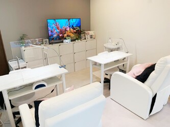 ベッドは10台ご用意しておりますので、お友達同士でご来店頂けます。ネイルブースもあり、まつ毛メニューをしながらネイルも同時に行うことができます!!