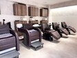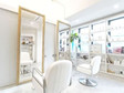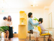 白を基調とし、緑もたくさん添えられたフロア内。天井は高さ8mで吹き抜けになっているため、開放感を感じることができます。当サロンのスタッフたちは、「容姿を綺麗にするだけが、私たちの仕事じゃない。」と考えています。お客様に癒しの時間とハッピーをご提供し、キレイになる喜びを感じていただくために、空間の雰囲気作りからヘアースタイルの完成までこだわりを持って行います。