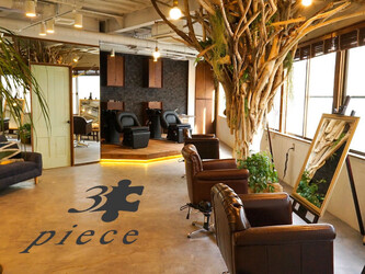 【キッズカット終了のお知らせ】 2025年6月1日より小学生以下のカットを含む全ての施術のご提供を終了させていただきます。 【料金値上げについて】 2024年6月1日より楽天ビューティー経由でのネット予約、電話予約の料金を改定させていただきます。 【高津駅から徒歩10秒】 駅からスグ!!アクセス抜群な『3piece』は、ビル2階に位置しているので、人目を気にせずゆったり過ごす事が出来ます☆お子様連れも大歓迎ですが、出来れば日頃なかなか自分の時間がないママさんに1人でご来店頂いてリフレッシュしてもらいたく思っています♪店内の至る所に流木を使っていて、グリーンも沢山あるので落ち着けると思います☆ ご家族で違う時間に予約された場合は同じ時間に来店される場合、備考欄に記入して頂けると助かります。 <地域初!脱毛サロン併設> 3pieceでは、ヘアだけでなく光脱毛も取り入れています。 髭以外の全身の脱毛も行っています。 女性の方も大歓迎 駅近くで落ち着けるmyサロンをお探しの方は、ぜひ当店へ★お客様のご来店を心よりお待ちしております♪