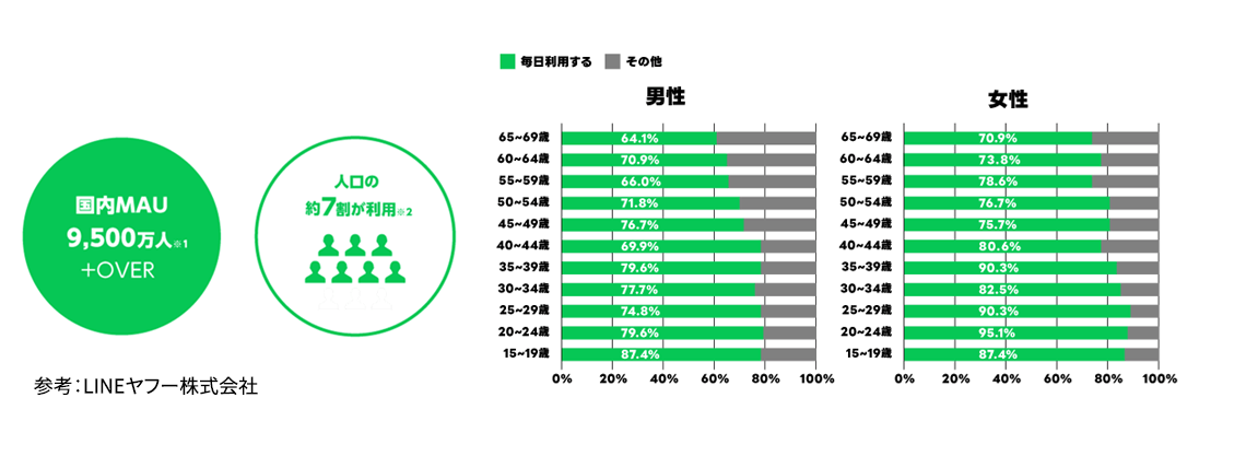 LINEは、月間ユーザー数9,600万人(2023年12月末時点)と日本最大のSNS利用ユーザー数を抱えています。
