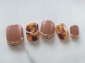 べっ甲はそもそも熱帯に棲むウミガメの一種であるタイマイの甲羅を連想させるデザインのことで、爪に茶色やオレンジ黄色などを使い、それらしいタイダイのような模様をつくったデザインのことをべっ甲ネイルと呼びます。その色味から秋冬に人気のあるデザインとなっていますが全体に施しても、部分的に取り入れても上品さが出ることからオトナ女子に人気のデザインとなっています。