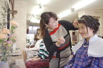 1932年創業の美容室 結婚式、舞台、お芝居、バレエなどの支度をはじめヘア・メイク、着付けの得意な美容室で、多くのブライダル、ファッションショー、TV撮影などを担当してます。ご予約により早朝受付が可能で、ご宿泊ホテル(ホテル白菊、杉乃井ホテル、潮騒の宿 晴海、亀の井ホテル 等)への無料送迎もいたします。店舗は1Fで車椅子でもご利用できるバリアフリー構造です。