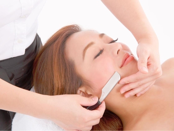 小顔ケアと顔剃りコースをセットでご提供♪弱酸性オリジナルクリームを使い速攻ムダ毛ケアができる保湿効果アリのシェービング!古くなった角質が除去され施術後は別人のつるつるお肌に!マタニティーの方でも利用できるのが嬉しいですね。