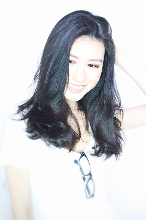 大きめのカールでしっかり巻いたロングスタイル。高めの位置に入れたレイヤ―で動きが出るので黒髪でも重たくなり過ぎません。毛量を削り過ぎないことでパサつきがなくしっとり大人っぽいイメージに。20代~50代など、幅広い年代の方に似合うヘアスタイル