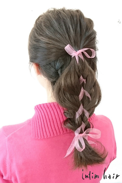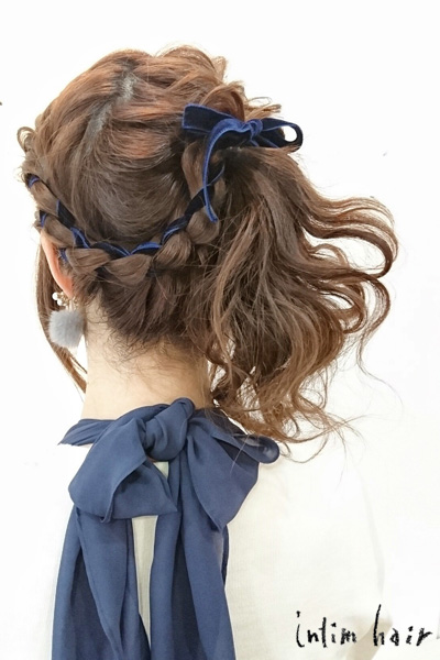 編み込みリボンヘアアレンジ