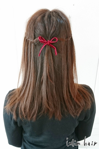 最後は細かいウォーターフォールをリボンで結んだヘアアレンジ。