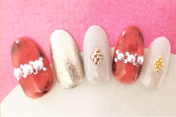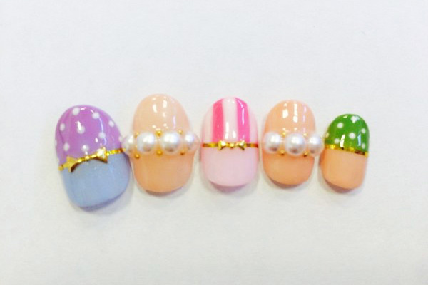 短い爪でも女性らしいデザインに!女度UPなパール付きショートネイル 5選