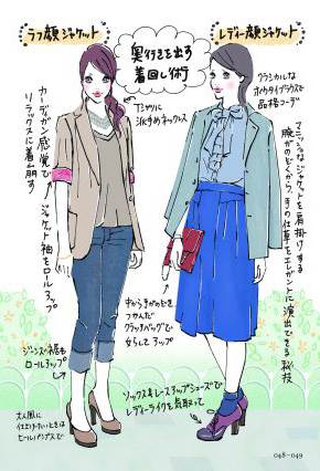 そこでメンズファッションのようにルール通りのジャケットの着こなしをするのではなく、ハズした着こなしを心がけることをおススメします。オンスタイルとは違ったアップグレードしたジャケットスタイリングになるんですよ。