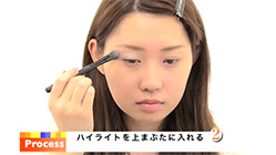 ハイライトを上まぶた全体に入れる。