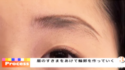 アイブロウペンシルで眉毛の輪郭を作る。