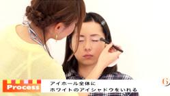 アイホール全体に、白色のアイシャドウを分かりやすいぐらい多めに入れる。