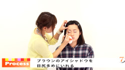 ブラウンのアイシャドウを目尻に丸く、多く入れてタレ目を作る。