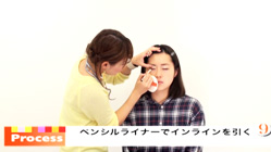 ペンシルライナーで、まつ毛とまつ毛の間を埋めるようにインラインを引く。