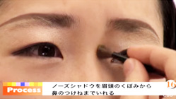 ノーズシャドウを眉頭のくぼみから鼻の付け根まで入れる。鼻先のサイドにも入れるのがポイント。