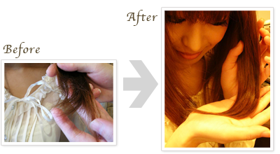 実際に触ってみてびっくり。全体がしっとりしてて、パサパサだった毛先も綺麗にまとまって、とってもすごい!!