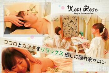 『Koti-Rose(コティローズ)』は完全プライベートの隠れ家サロン。 日常の慌ただしさを忘れ、ひとときの間、ココロとカラダを開放し、非日常的な空間で極上の癒しの時間をご堪能していただきたい・・・そんな思いから生まれたサロンです。 即効性NO.1のデトックスケアとしてサロン1番人気メニューが『リンパドレナージュ』。滞りがちなリンパを穏やかなタッチングで流し、高いデトックス効果と深いリラックス効果を♪ むくみがとれて、足も軽くスッキリ!施術後のカラダの軽さは爽快です! プレミアムコースの『コティローズスペシャル』『ヒーリングオブラグジュアリー』は、 「アロマトリートメント」「ボディケア」「リンパドレナージュ」 「ヘッドテラピー」「リフレクソロジー」「バリニーズ」「ホットストーン」7つのメニューから組み立てる、特別なオーダーメイドコースです! ご来店への感謝の気持ちとして、毎回オーナー手作りの雑貨をプレゼント!「施術後もワクワクします!」と、お客様にもとても喜んでいただいています♪ これから皆様と新たに繋がっていく素敵なご縁を楽しみにしています。