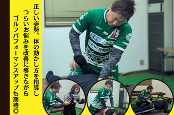 【整体60分4,500円~】正しい姿勢、正しい身体の動きを身に付け、いくつになってもゴルフを楽しめる体へ☆筋力が衰えないよう体を鍛えながら首肩腰の辛さの根本改善とパフォーマンスアップを目指します。