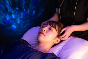 非日常感満点のプラネタリウム空間で受ける寝落ち必須のドライヘッドスパ♪絶妙な力加減でガチガチの頭皮や首肩周りを緩めて、溜まったお疲れをリセット◎