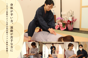 《お子様連れ歓迎》《クレジットカード可》 疲れがとれない・コリがたまっている・むくみが気になる・・・そのようなお悩みに寄り添います◎ まずは姿勢から見直して、カラダを正しい位置へ。疲れや悩みの根本的な原因にアプローチします。 疲れの原因をしっかりと見極め、お客様のご要望に合わせた手技が可能です◎ きっと満足していただけますので、お気軽にご来店くださいませ。