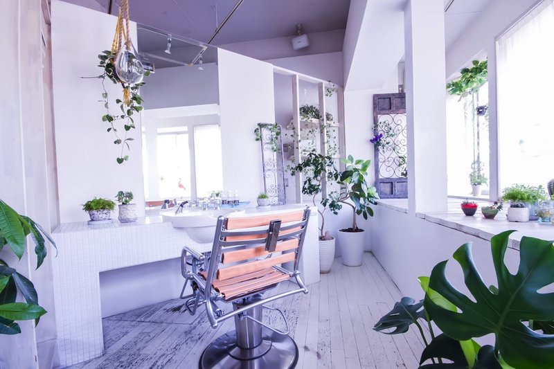 大きな窓から入る自然光が、店内を明るく照らします。店内には多くの観葉植物があり、造りは白を基調としているので、リゾート地のような居心地を感じていただけます。