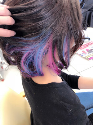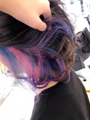 2ブリーチしてます。モーブバイオレット、ピンク、ネイビーブルー