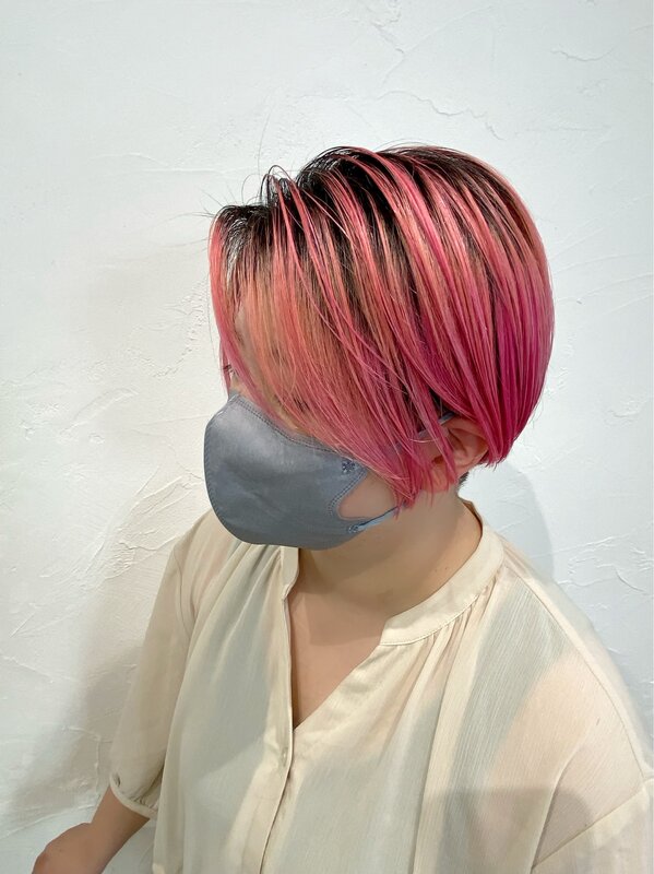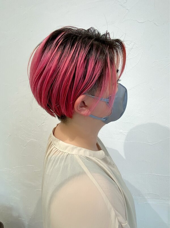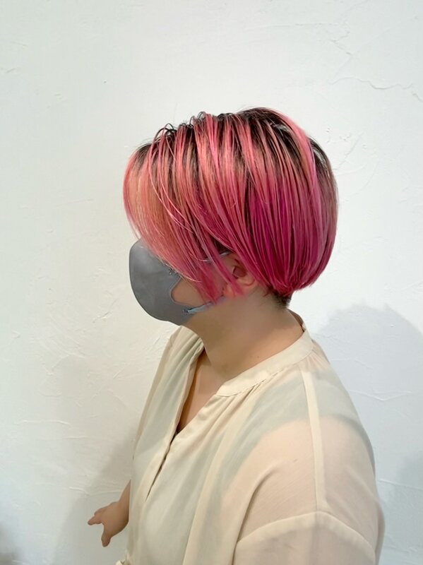 ベリーピンクカラー×切りっぱなし×前下がりボブ|Infini-Y’s ウェルディ長泉店
