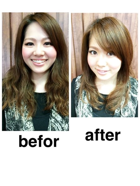 小顔補正立体カットされた方、超ヘアケアトリートメント【スーパーリペア】プレゼント