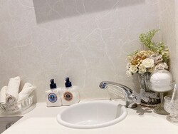 ハンドクリームやコットンなど、気遣いが嬉しいこだわりのパウダールーム
