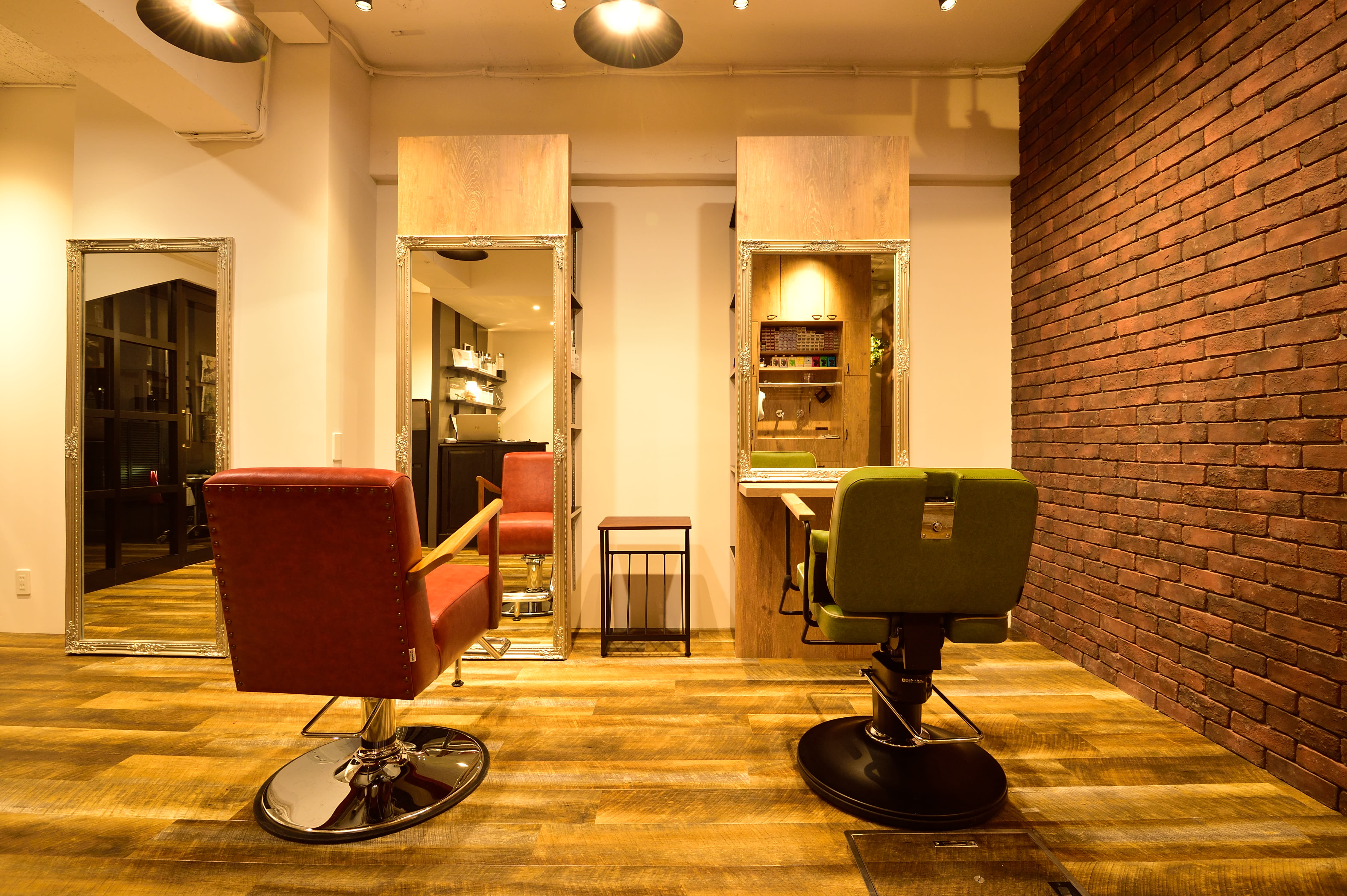 店内は、レンガを基調とした、インダストリアルスタイルに統一♪♪ジャズを中心とした音楽で、ゆったりとした空間を演出しているので、初めての方でも緊張せず、長時間のサロンタイムを楽しく過ごすことができます☆