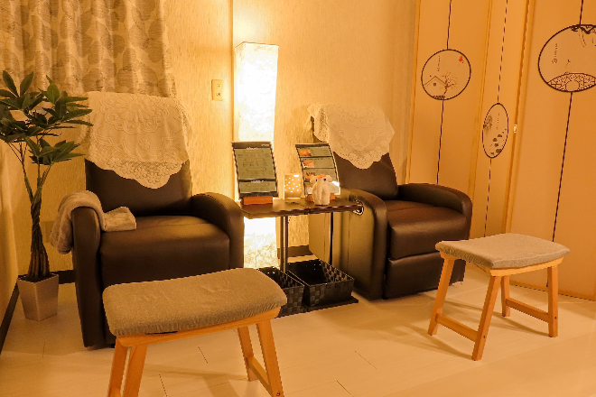 ■足裏・足つぼ:イタ気持ちいい刺激がヤミツキに☆足裏~ふくらはぎまで施術します。足裏は、保湿力のある緑茶エキス配合のクリームを使って強めの圧でツボを刺激します。ふくらはぎまでほぐして流します。生姜やシソなど12種類の和漢パックを配合した足湯付きなので、足元からポカポカに♪ ・足元スッキリ♪ ・冷えや膨張感、ダルさに◎ ==========================※【再来限定】は同一EPARKのID利用者が2回目以後に作られたメニューです。【再来限定価格】のメニューには『体験割』は適用されません。あらかじめご了承くださいますようお願いいたします。※30日以内の再来店で指名料が無料になります。※クレジットカードでのお支払いには対応しておりません。あらかじめご了承くださいませ。==========================
