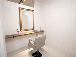 白を基調にした清潔感のあるサロンです。木目調のタイルが癒し効果を与えております。
