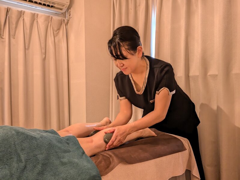当サロンのホットストーンセラピーにはハワイで購入した貴重な玄武岩(溶岩が自然に丸くなった石を手拾いしたもの)を使用しています。温めながらほぐされていく感覚は、まるで温泉に浸かりながらマッサージを受けているような気分に……♪ガンコなコリにお悩みの方や冷え性の方におすすめのメニューです。さらに、オイルにもこだわり天然成分100%のスイートアーモンドオイルを使用。アレルギーの方にもライスブランオイルをご用意いたしますのでお気軽にご相談ください!