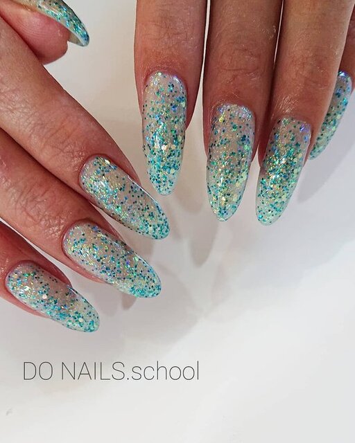 ネイル界で人気の高いデザイン・ラメグラデーションにネオンカラーを取り入れるならグリーンがおすすめです。乳白色のワンカラーをベースに、ネオングリーンの大粒ラメを散りばめれば指先が一気にゴージャスに。ベースをシアーカラーにしておくと、ほんのり自爪が透けて抜け感が生まれ、華やかだけどどこか無垢な印象に仕上がります。