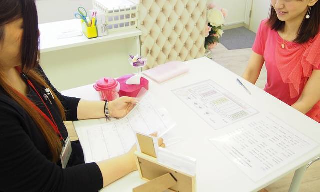 まつエクの種類、デザイン(形)の説明を受けます。自宅でのケア方法も丁寧に教えてもらえるので、初めてでも安心して受けられます。