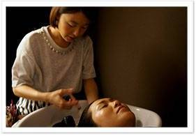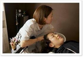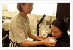 頭皮に温かいスチームを当てながら、マッサージしていきます。頭皮は、緊張や疲れで硬くなりやすいので、シャンプー前にしっかりほぐすことが重要。
