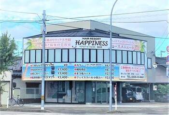 ハピネスでは、髪質改善に力を入れています◎ダメージレスなカット、トリートメントを同時に進行しながら行いますカラー♪一人一人の髪質に合わせトリートメントもさせて頂きます♪ヘッドスパでは、頭皮から髪の毛をキレイな状態に導きます!ご新規様10%OFFキャンペーンもやっておりますのでこの機会に是非ご利用下さい☆南国リゾートのようなリラックスできる空間でゆったりとお寛ぎ下さい♪